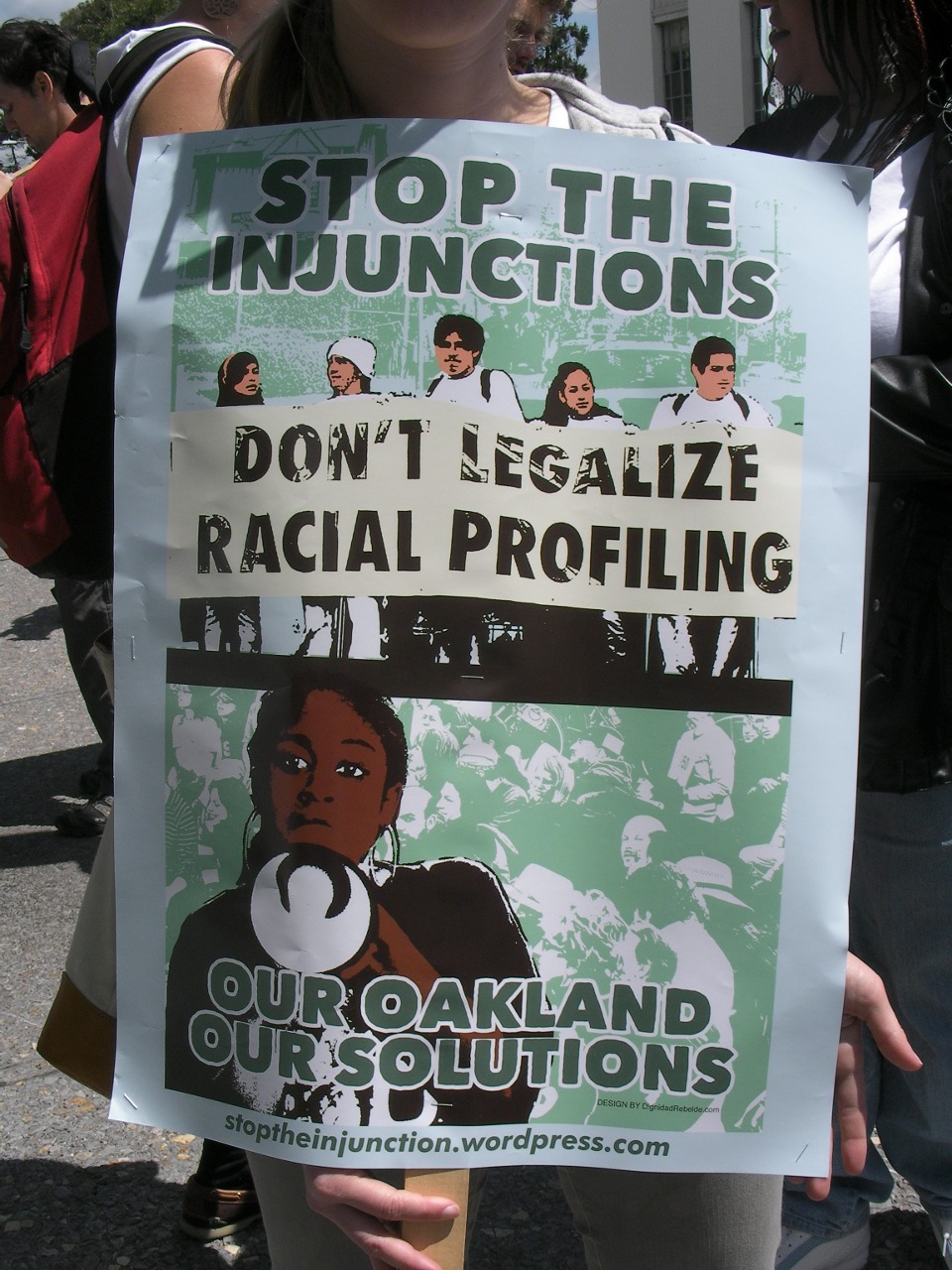 Community members spoke out against the proposal, saying that it does not address the root causes of violence, relies on racial profiling, strips people of their constitutional rights, and threatens to push poor and working class people of color out of North Oakland. Protesters also pointed out that the injunction would cost the city almost half a million dollars, money that could be used on education and youth programs.