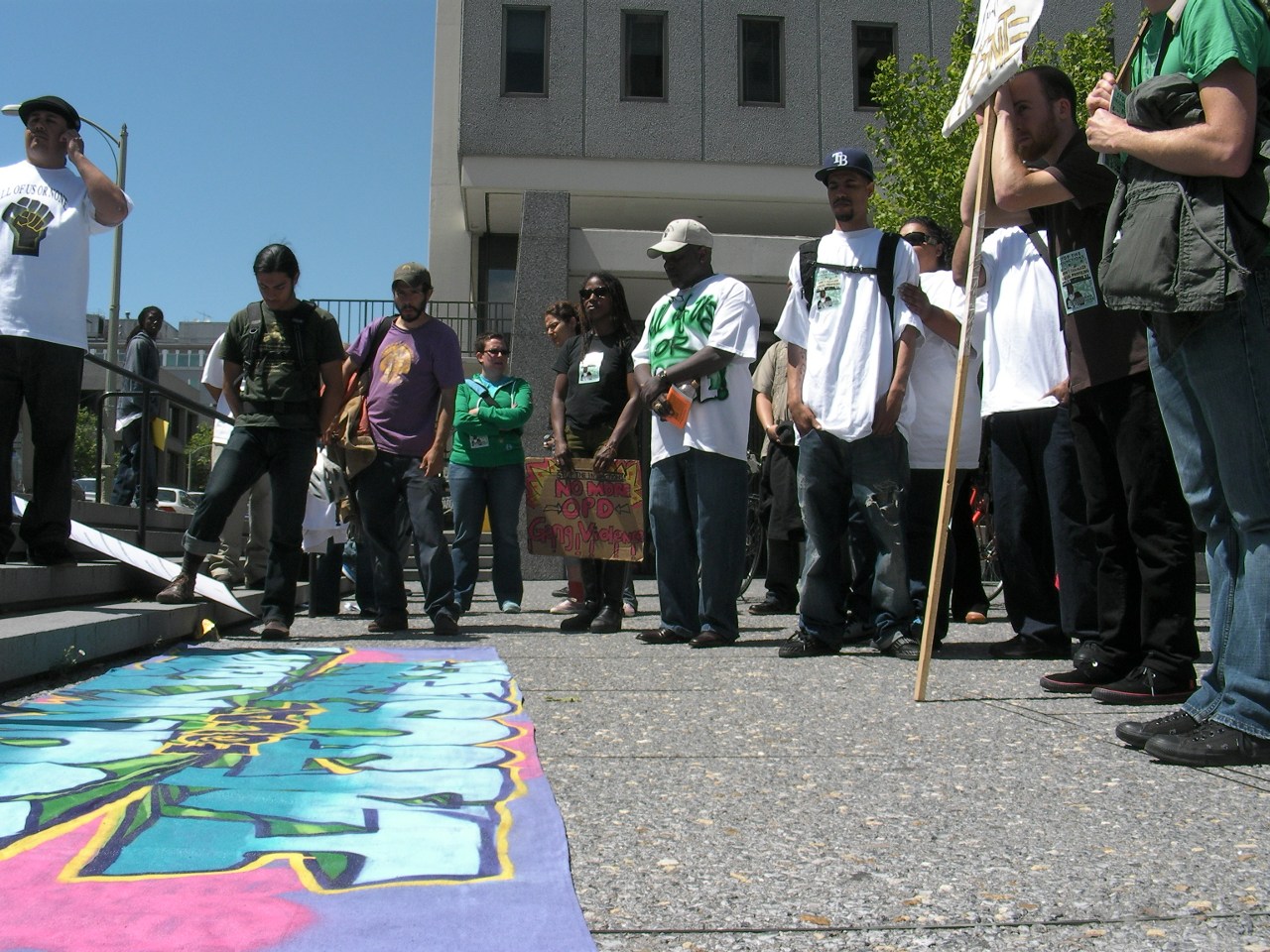 On Thursday, April 22nd, around a hundred community members rallied outside a courthouse in Oakland to oppose a controversial gang injunction proposed by City Attorney John Russo. The proposed injunction would criminalize everyday activities in a 100 square block area of North Oakland. Community members spoke out against the injunction, saying it would rely on racial profiling and strip people of their civil rights.