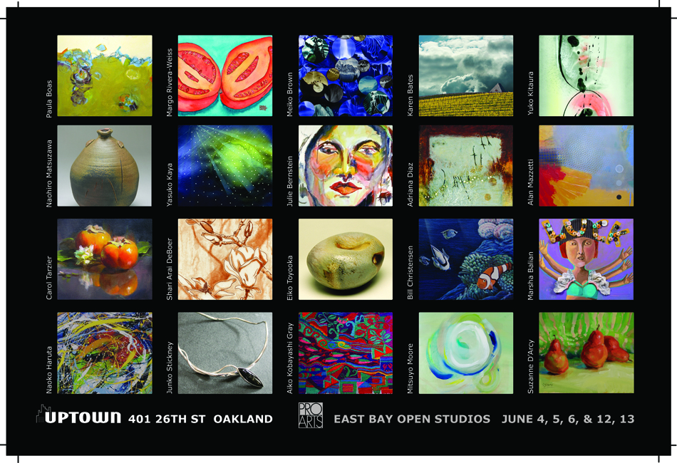 Art lovers may view sample work by the over 400 artists participating the Open Studios event at Pro Arts Gallery located at 150 Frank Ogawa Plaza in downtown Oakland. The preview exhibit opens on May 4th. Gala and artist receptions will be held on Thursday, June 3rd. Viewers create their own custom art tour through viewing the preview exhibit, the show directory/map and visiting the online gallery. Directory/maps are available at Pro-Arts Gallery and you may preview online at proartsgallery.org.