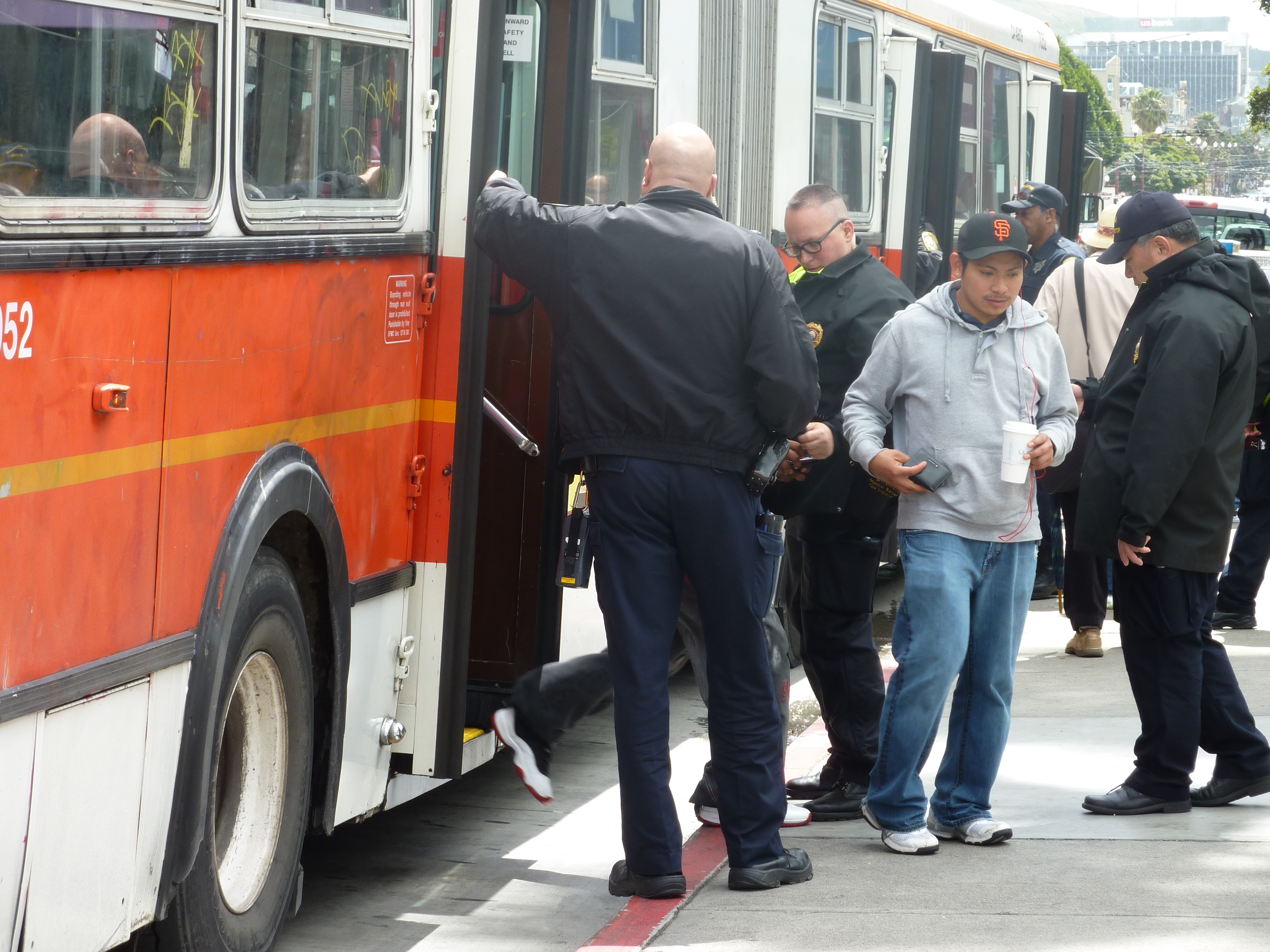 San Francisco police and Muni fare inspectors occupied 16th and Mission Streets, and conducted a "sting" operation against Muni riders, on Tuesday, April 27, 2010