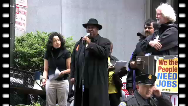 Al Marshall, who just lost his home, speaks. He is introduced by Rev. Dr. Mario Howell, and Rosario Ramirez translates.