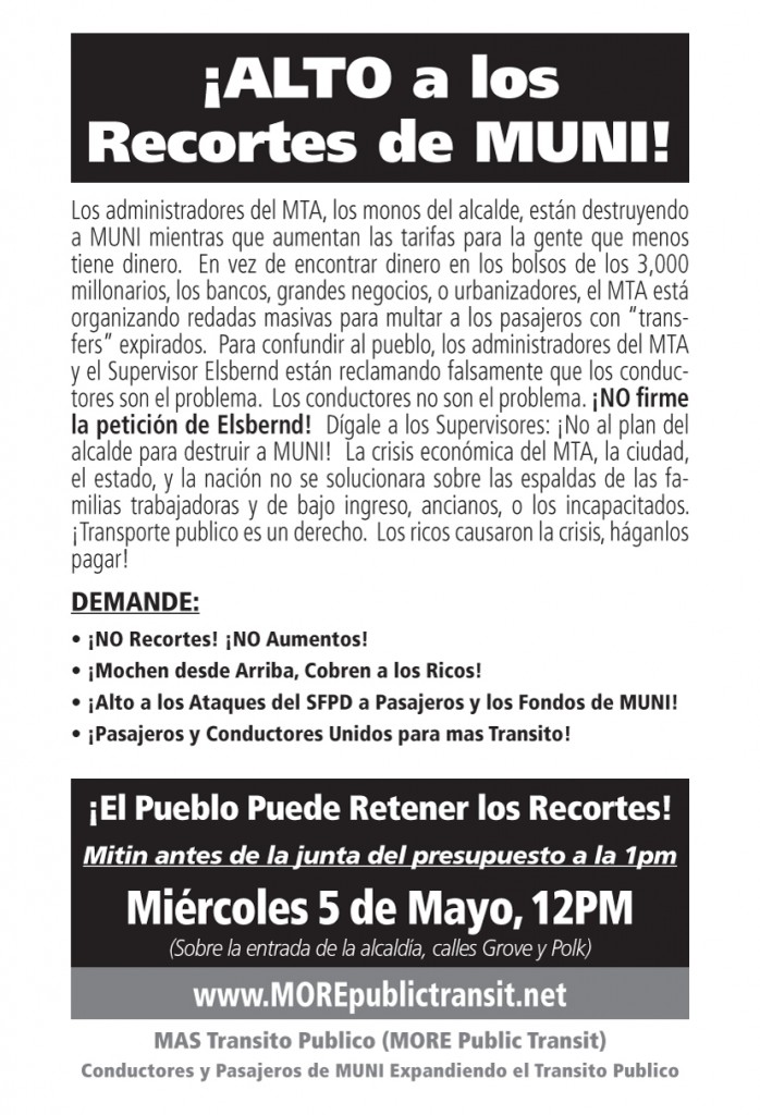 Organizing Meeting for MORE Public Transit - Upcoming May 5 Budget Hearing