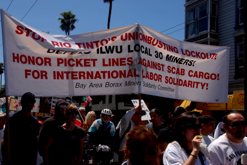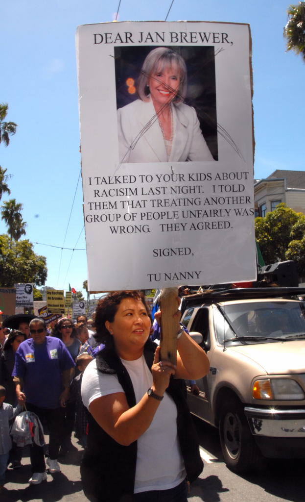 In one of the largest protest gatherings in recent San Francisco history, several thousand people marched down mission street to the Civic center to protest the recent Arizona legislation directed at un-documented immigrants. May Day, being the traditional labor day, many unions also came out to celebrate the workers holiday and spotlight other issues. The laborer's Union led the march.