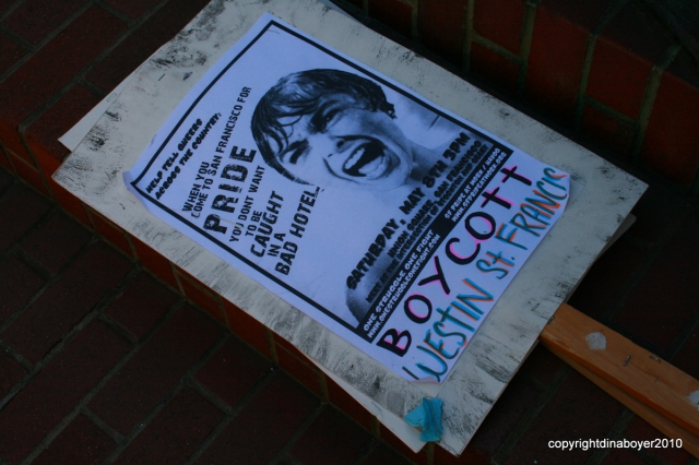 San Francisco's annual Gay pride is approaching and many queers stay in hotels when they visit, so the local GLBTQ community is asking them to join the boycott, so workers can be treated fairly and equally in San Francisco. There are also a few GLBTQ folks who work for those hotels or corporations.
