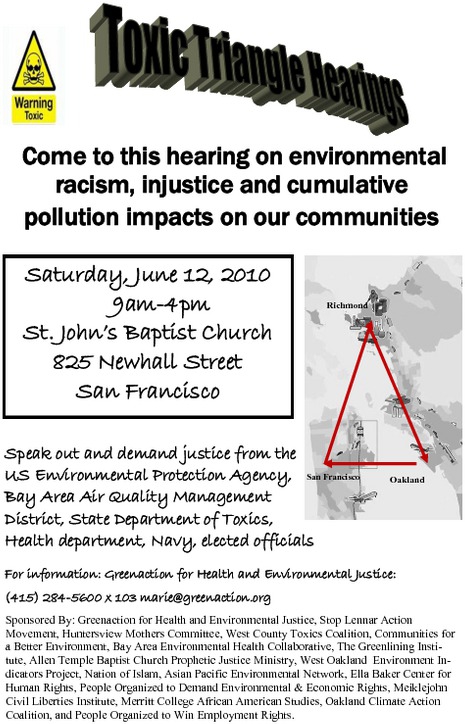 The Toxic Triangle hearing will be held at St John's Baptist Church, 825 Newhall Street, San Francisco, CA 94124 from 9am to 4pm