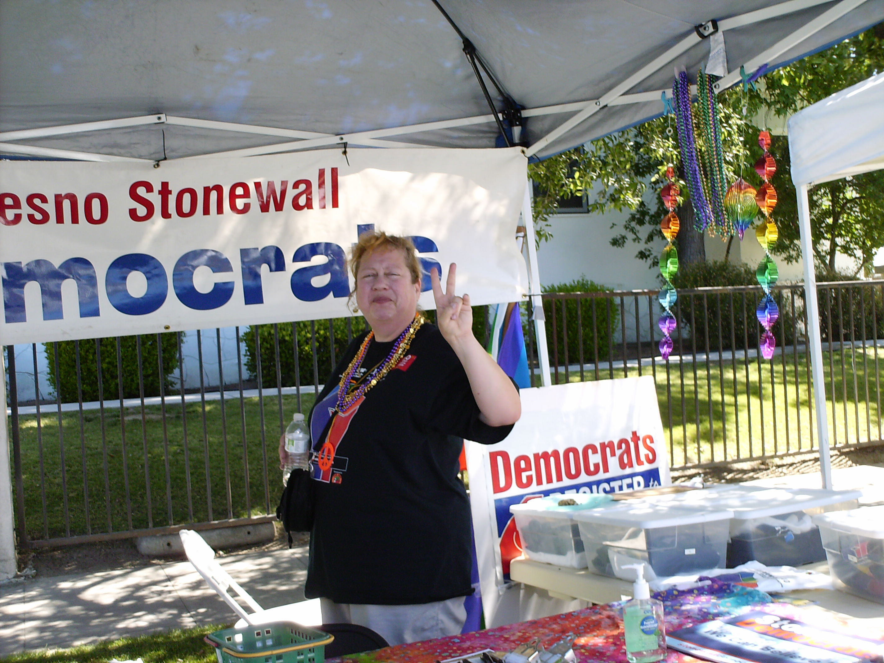 Genie Baranoff closing down the Fresno Stonewall Democrats booth.