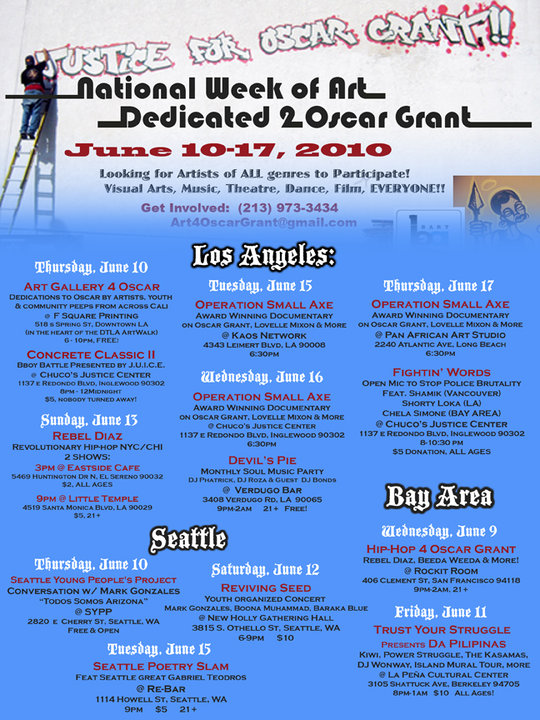 National Week of Art for Oscar Grant! LA, the Bay, Seattle come out and rep for justice!!