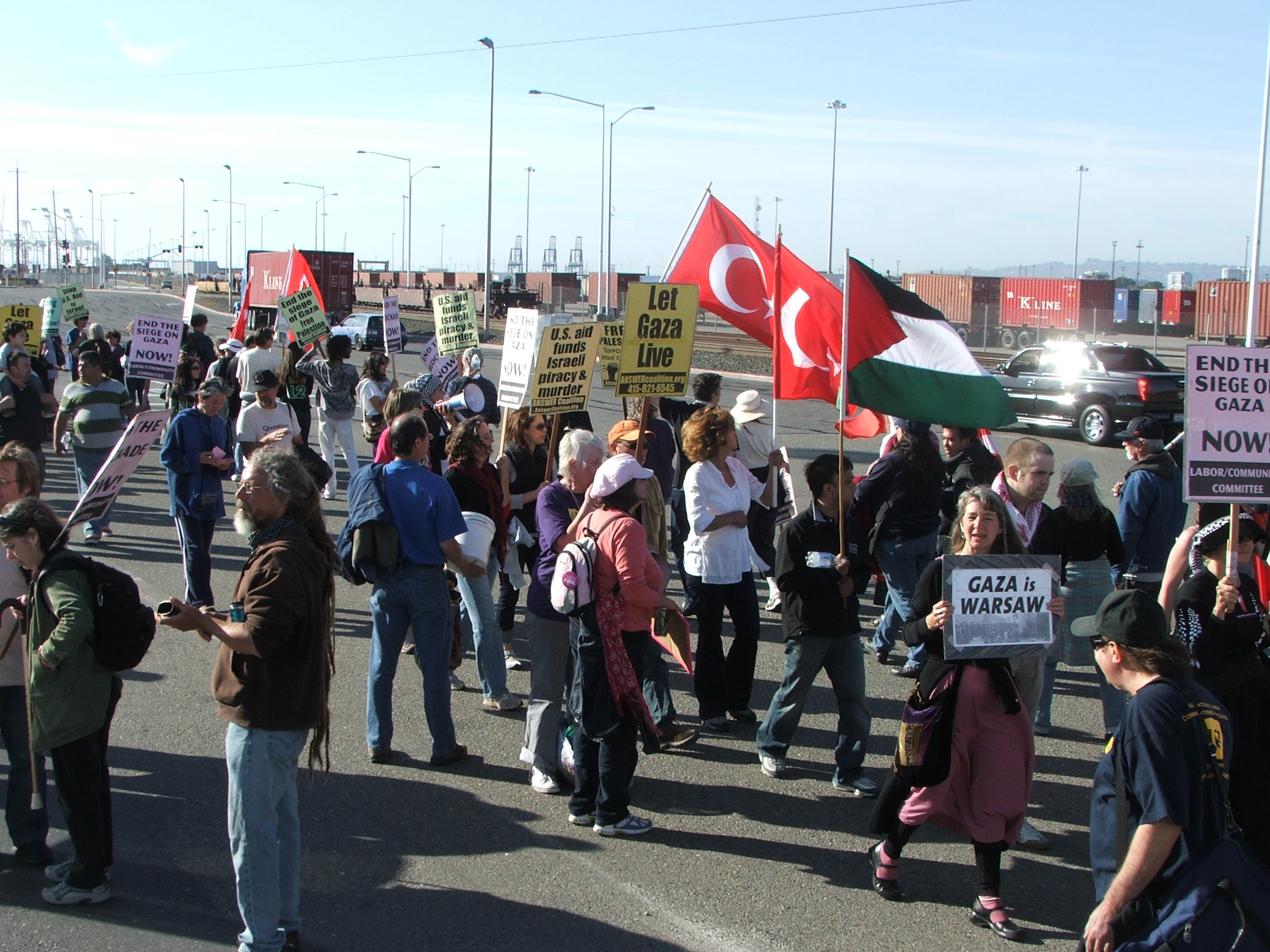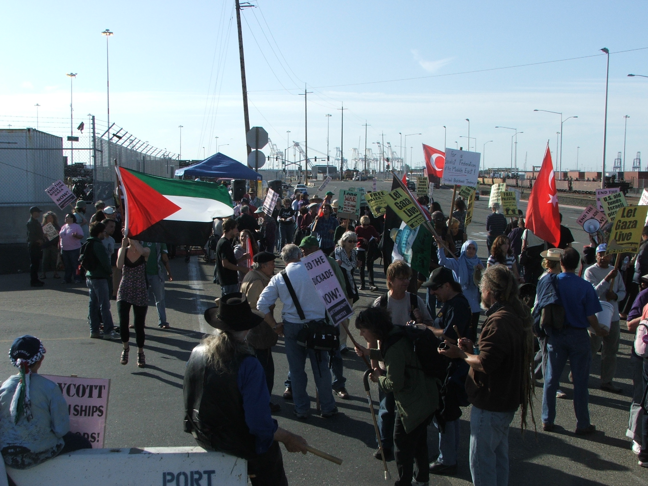 Picket of Israeli ship at Port of Oakland, SSA Terminal, Middle Harbor Road, Oakland, CA, June 20, 2010.