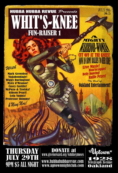Beloved local performer, Whitney Moses, suffered a massive injury in May of this year, and as a result is facing extensive & costly surgeries to re-attach her knee (OH _YUCK_!) The community of Bay Area entertainers has decided that this just plain sucks, so they've rallied together to throw...