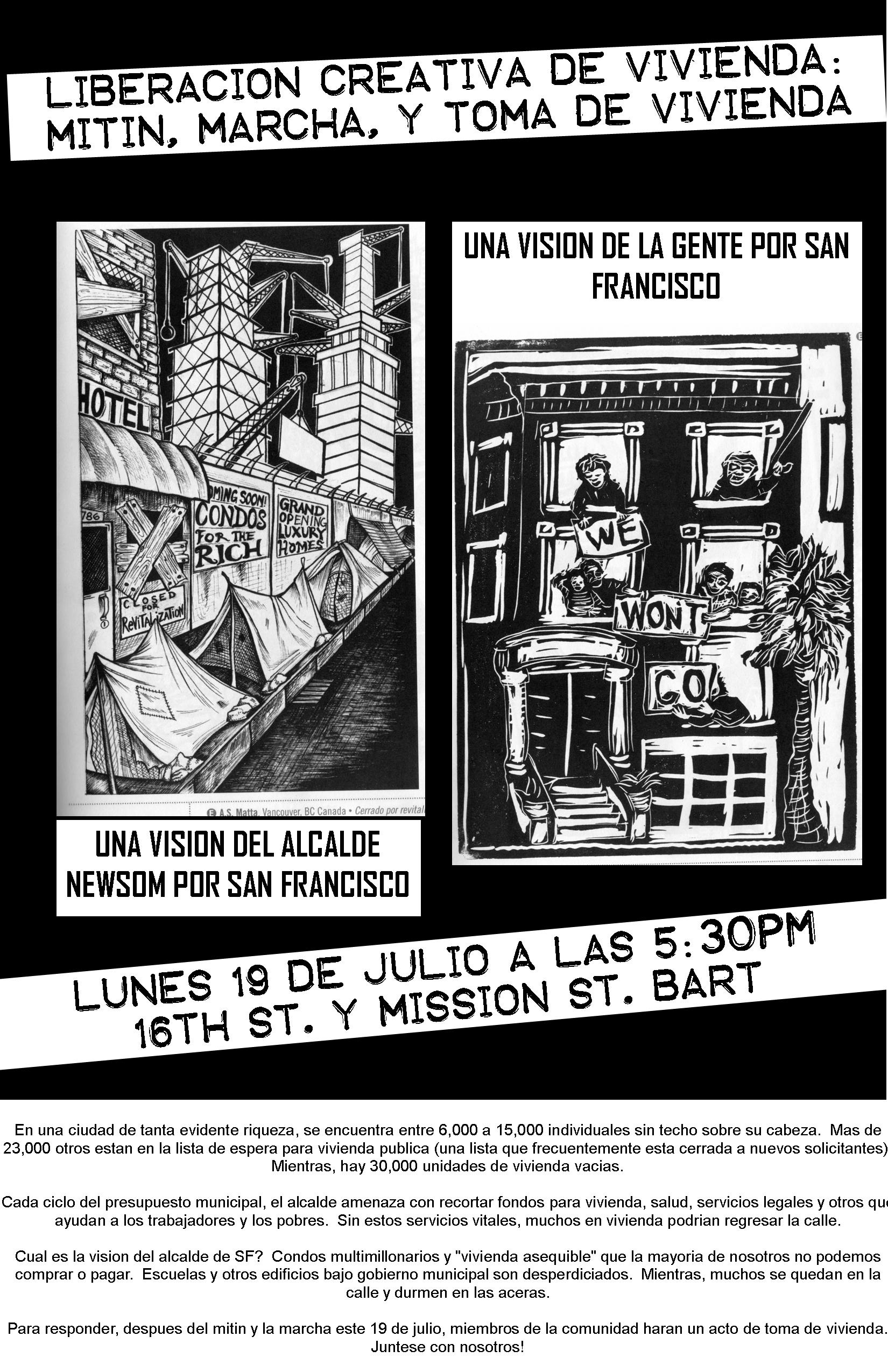 Para responder, despues del mitin y la marcha este 19 de julio, miembros de la comunidad haran un acto de toma de vivienda. Juntese con nosotros!