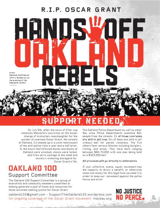A call out for solidarity with those arrested in the Oscar Grant Protests in Oakland, California.