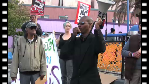 San Francisco, July 19 - It was open house at the Hotel Sierra at 20th and Mission Streets today. Late this afternoon housing activists from Stop the Cuts Bay Area opened up the long vacant residential hotel.