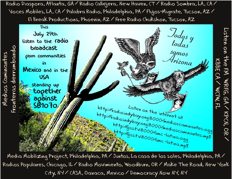 12 horas de transmisión de radio en vivo desde 10 ciudades diferentes en los Estados Unidos y México con la participación de 15 grupos y organizaciones de inmigrantes que nos manifestamos en contra de las políticas racistas del gobierno de Arizona y de la ausencia de una política migratoria clara, a nivel federal.