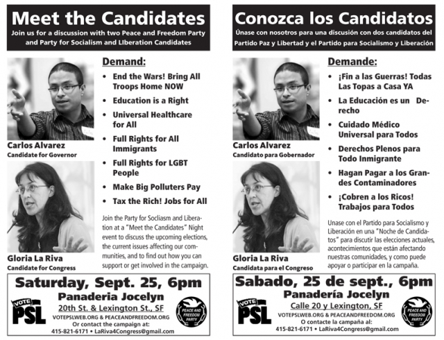 Únase con nosotros para una discusión con dos candidatos del Partido Paz y Libertad y el Partido para Socialismo y Liberación