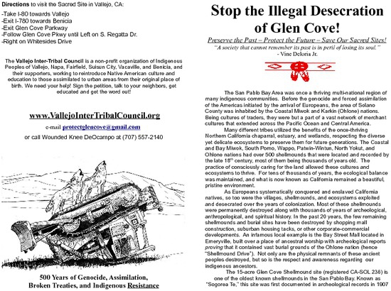The City of Vallejo, the Greater Vallejo Recreation District, and their developers, Alta Planning/Design are planning to start the physical eco-rape and destruction of ancient 5000 year shell mound in less than 10 days of this writing!!