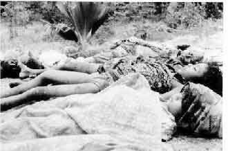 Victims were reportedly shot, bayoneted, stabbed or hacked to death; some were said by witnesses to have been buried