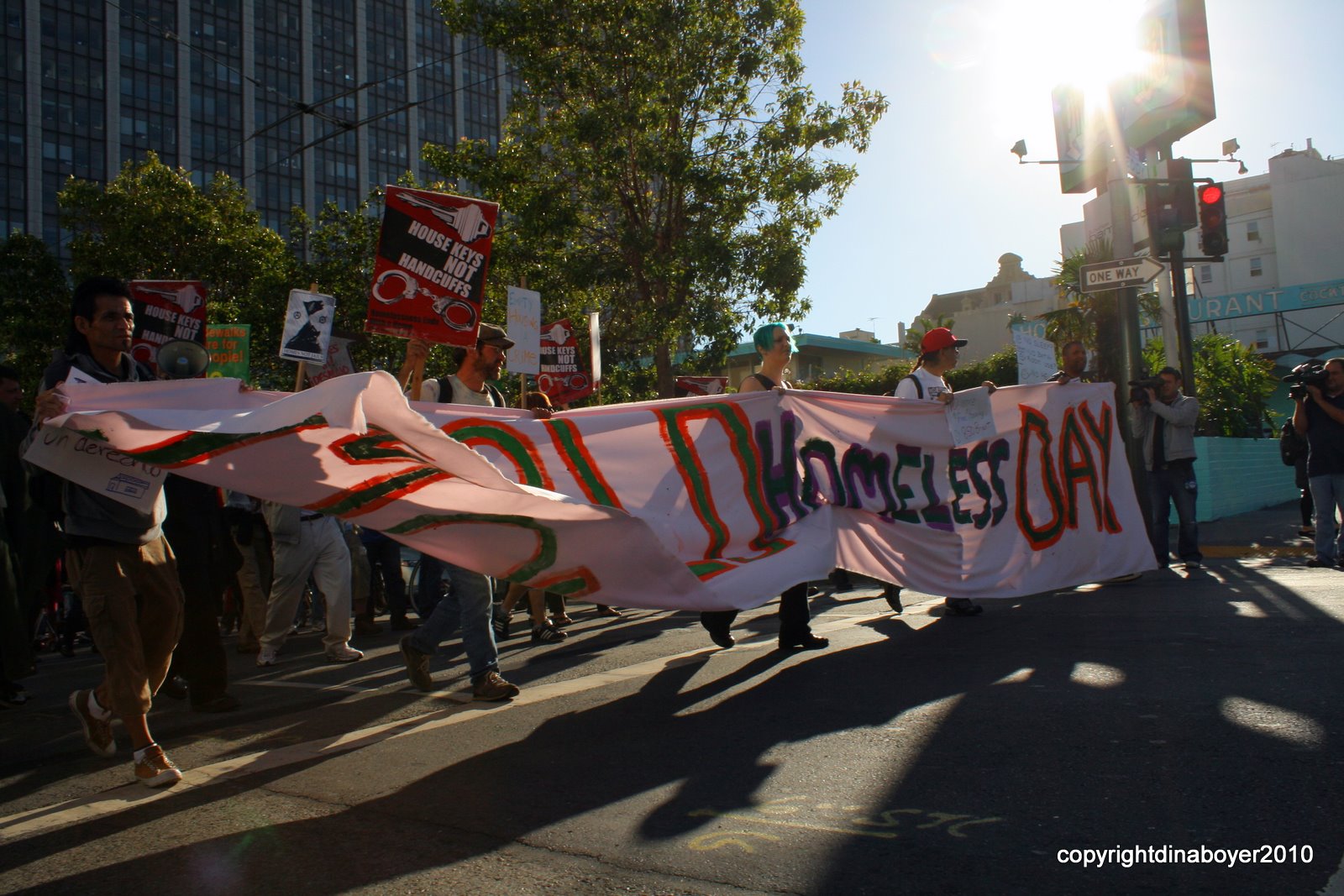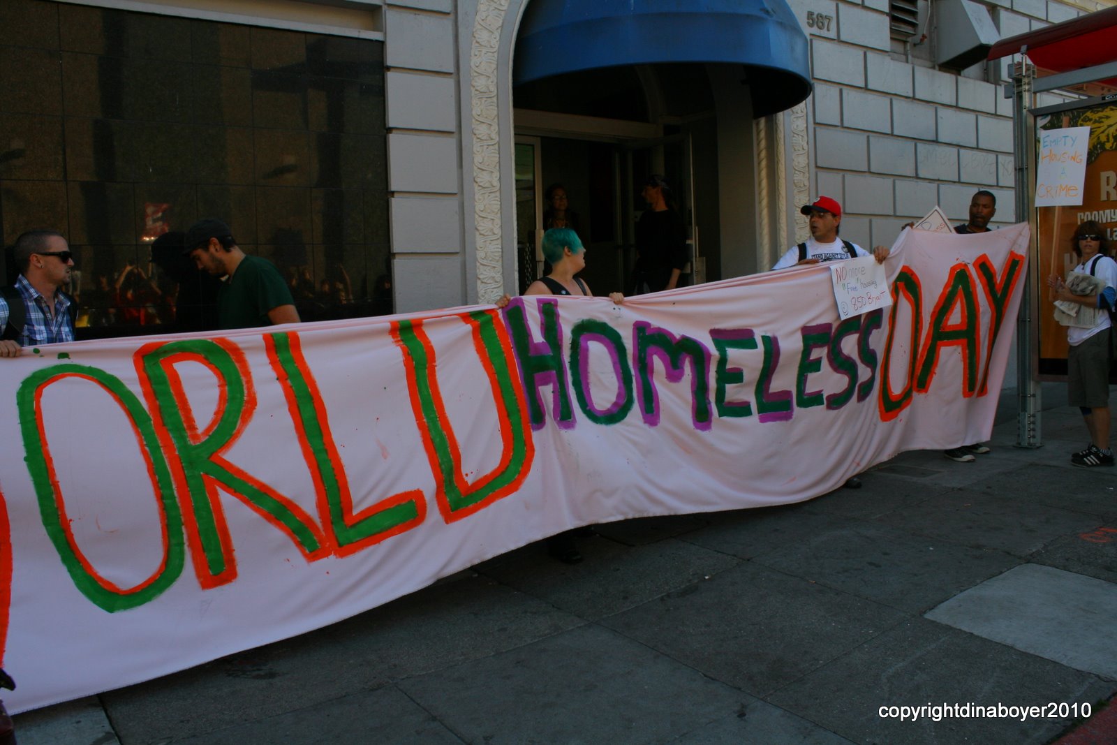 On October 10, 2010, a group called the Creative Housing Liberation organized a rally and march to honor World Homeless Day, which culminated into a housing take-over in the Tenderloin neighborhood in San Francisco. The empty building has sat vacant for two years, and according to many the shelter system in San Francisco is lacking beds, and many of the shelters are not safe nor clean. The building that was occupied was clean and seemed to be in good shape.