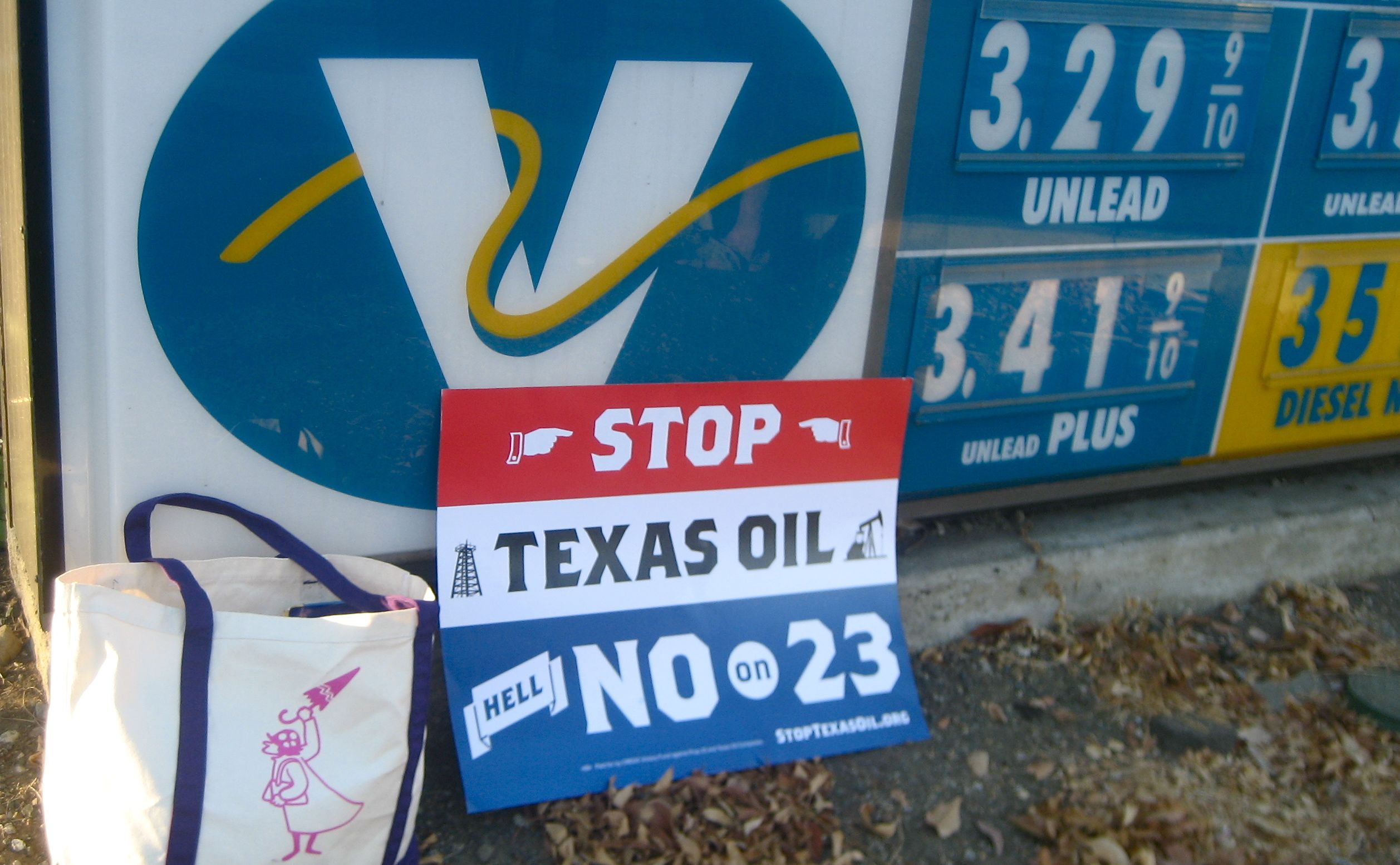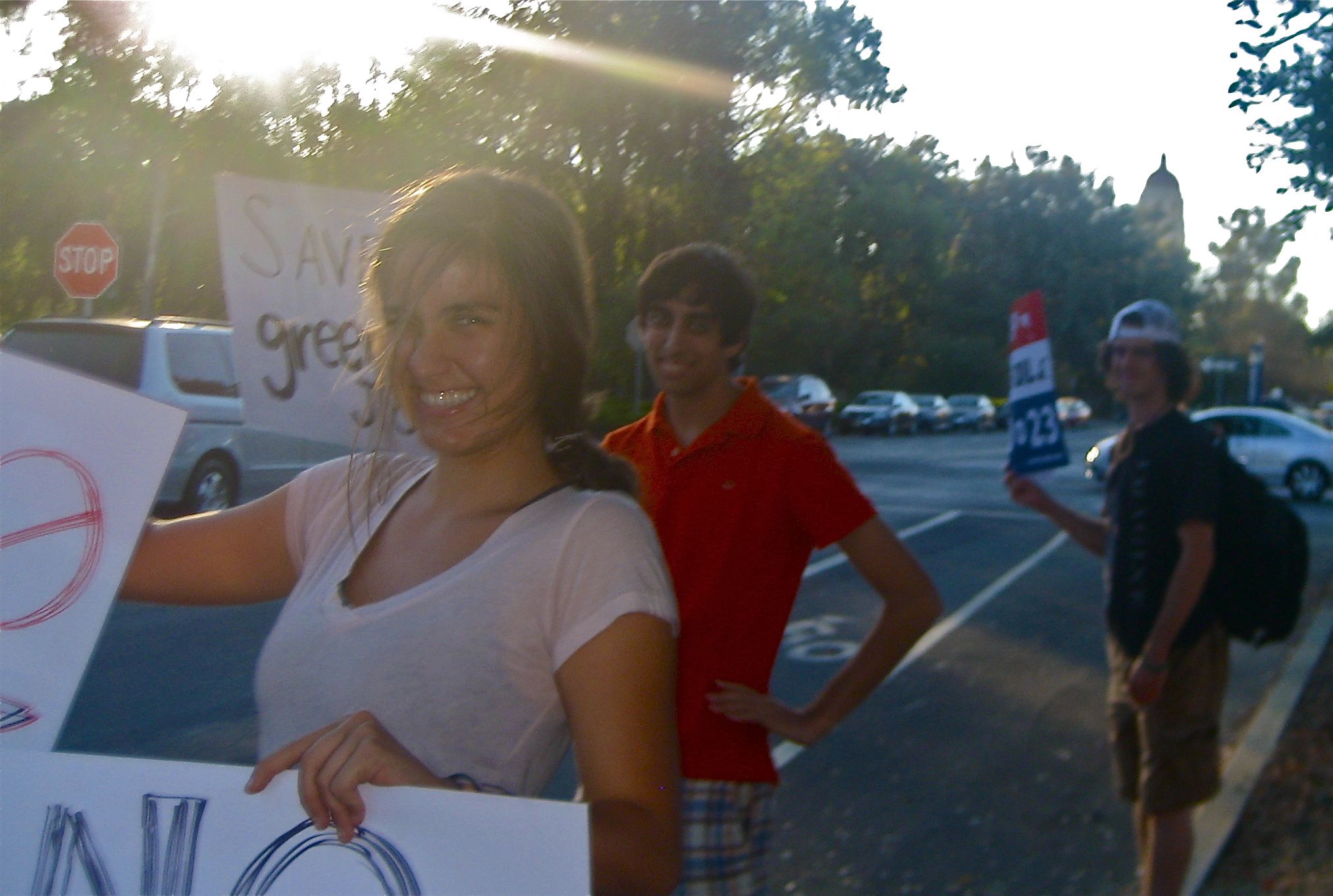 Stanford Sustainability Climateers are demonstrating every Friday from 5 - 6pm to say NO on Proposition 23 until the election. Today was their 4th Friday in front of the Valero gas station on the Stanford campus at the corner of Campus and Serra streets.