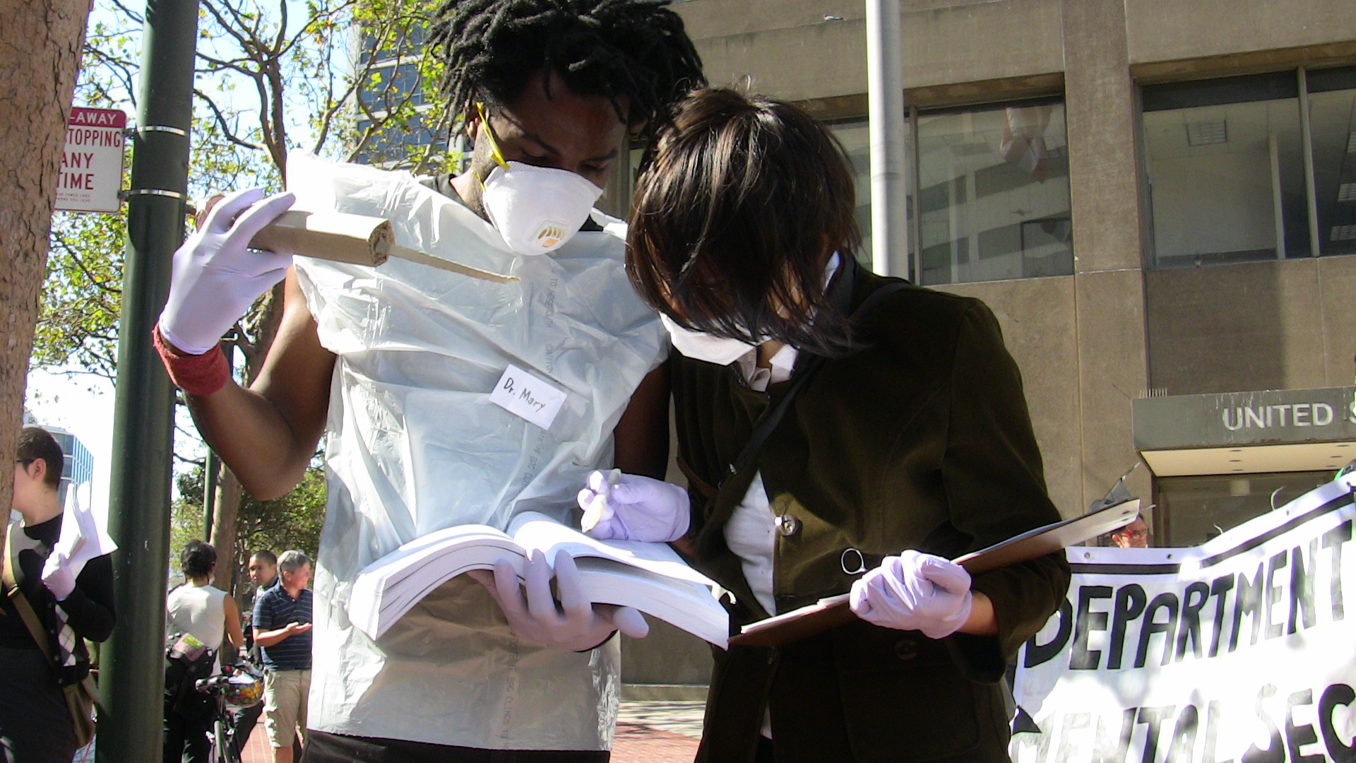 This action is a culmination of our many experiences negotiating with mental health institutions, both on the inside and outside of the system, as people who provide and people who receive, as people who attempt and as people who refuse, to access mental health care in the sick system. We’d like to envision mental health support systems that do not pathologize us, that relocate the site of the disorder back onto society and actually eradicate the social, political, and economic violence that makes us “sick”.
