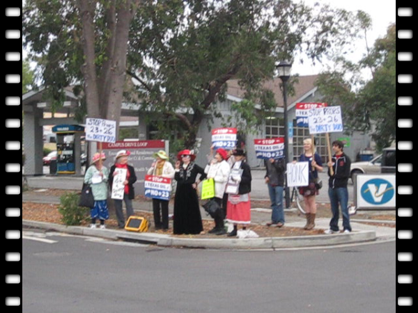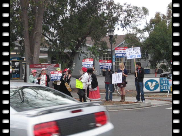On the Stanford University campus the word is out: No on 26, No on 23. To dramatize their message, Stanford activists told Big Oil to get lost and voters to beware of corporate greed with a demonstration in front of the campus Valero gas station. They loudly broadcast their message to passing joggers, bicyclists, pedestrians and motorists. Street theater in two very short videos show activists telling the "Crotch Brothers" (Koch Brothers) and Valero Oil to mosey on back to Texas and stay OUT of California's business.