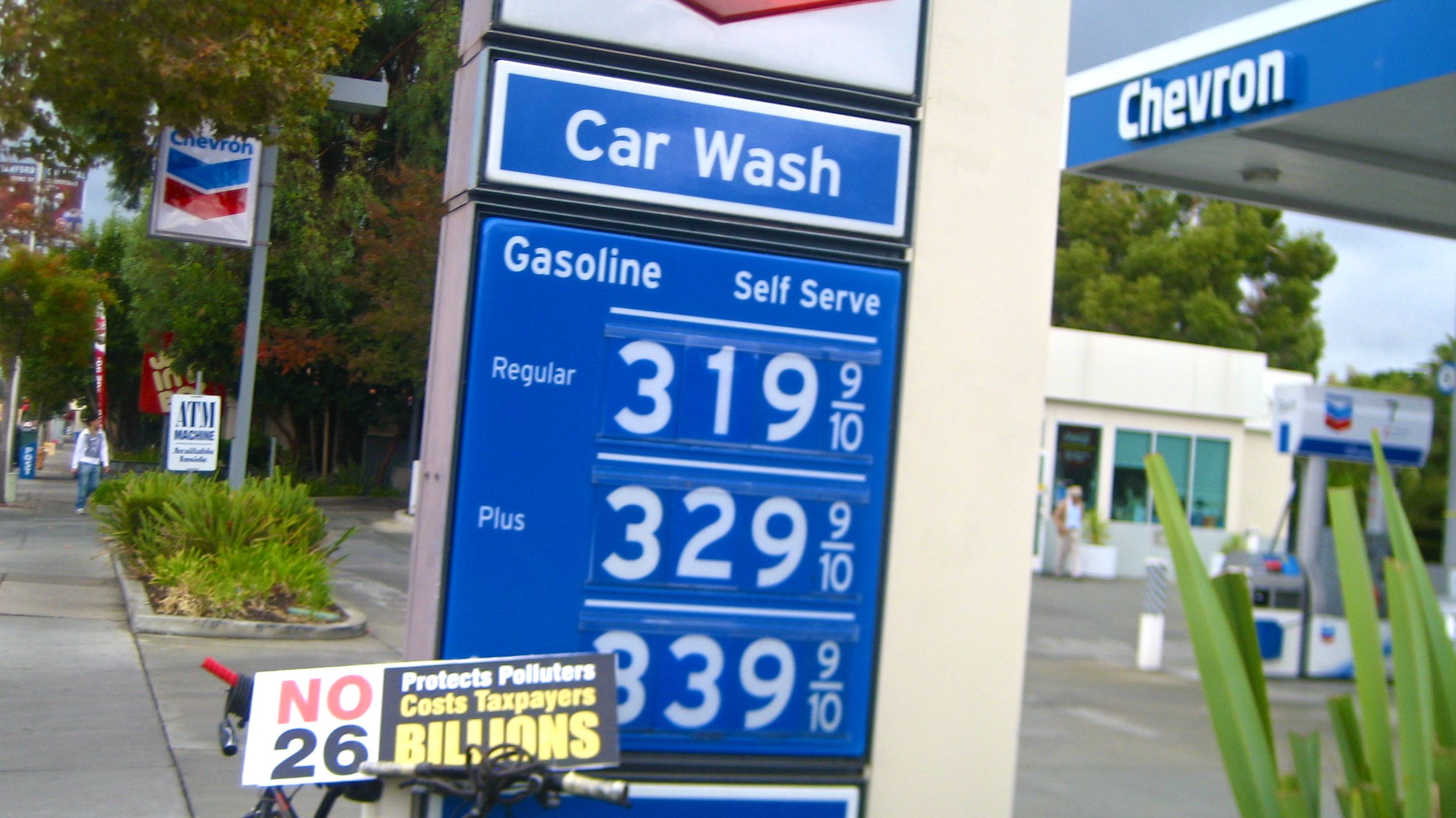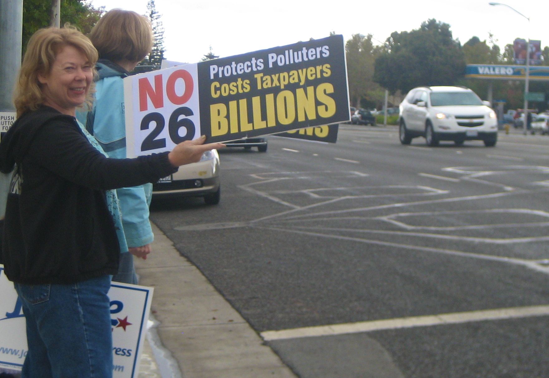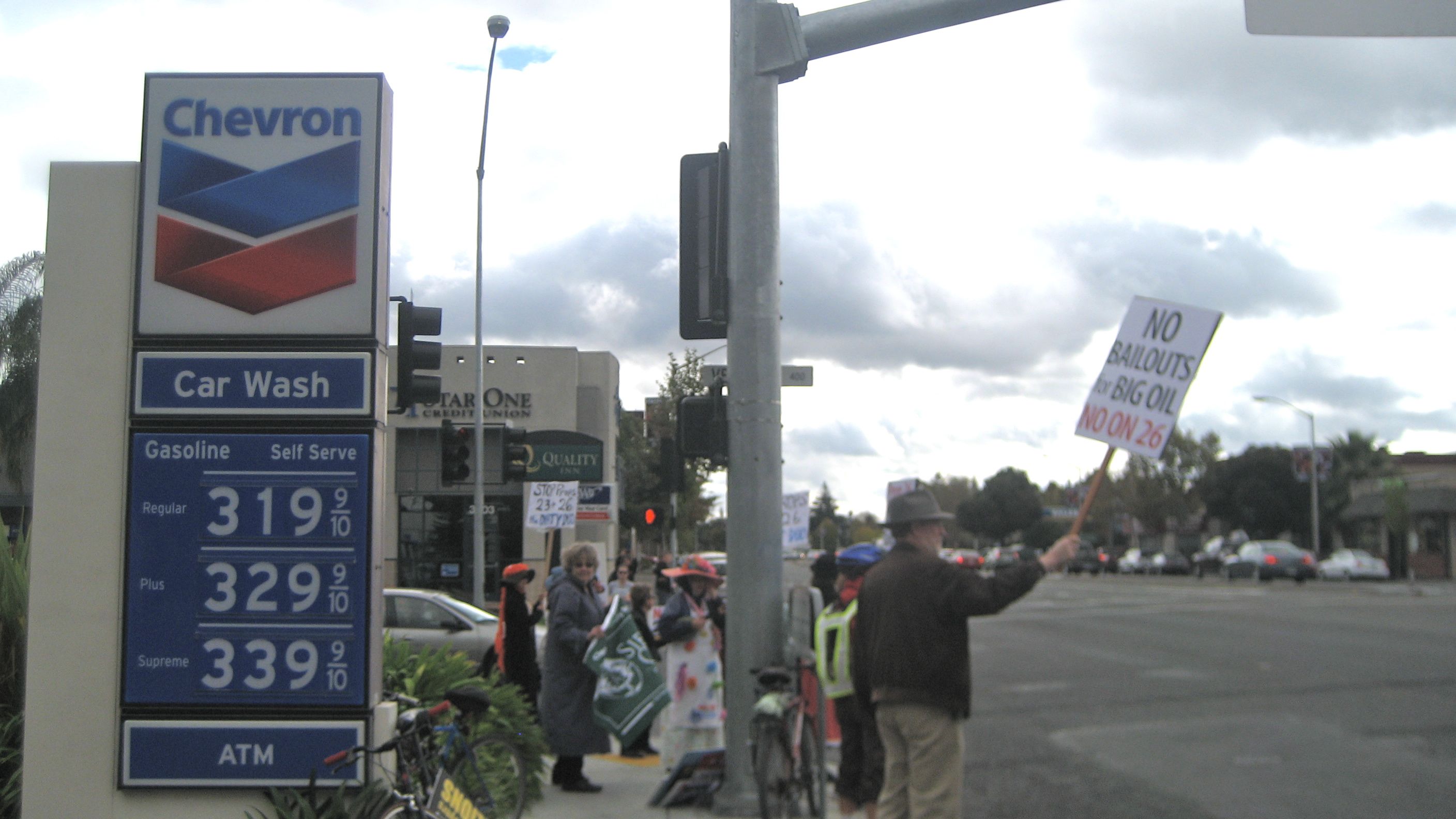 Sierra Club Loma Prieta Chapter campaign workers, volunteers, and allies armed with large No on 26 placards, showed up at a Palo Alto Chevron gas station to protest Chevron's support of Proposition 26 today.