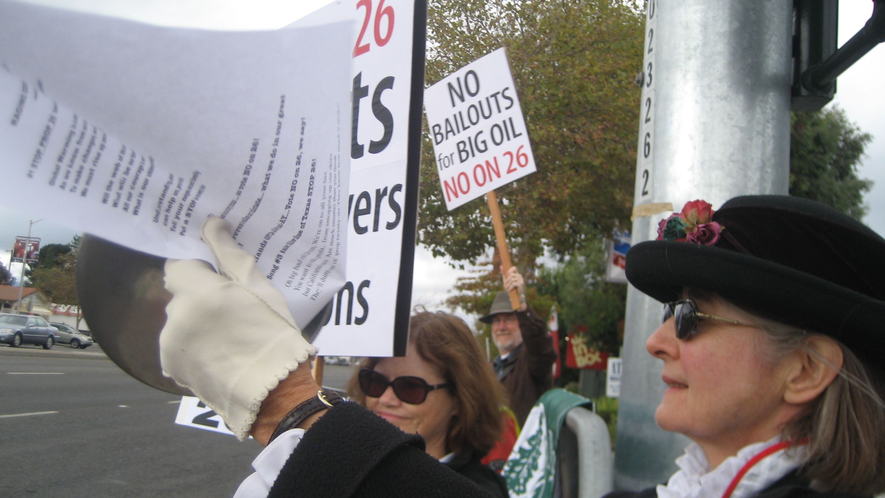 Proposition 26 gets the bulk of its financial support from oil and gas companies, with Chevron leading the pack. Palo Alto resident Ruth Chippendale said "oil companies are not well liked here. Palo Alto is a green city." At age 81, "Granny Ruth C.", as she is known, has been manning phones and singing anti Prop 26 songs at parties to raise awareness about the dangers of Proposition 26. As a member of the Raging Grannies, she gives voice in song to the issue.