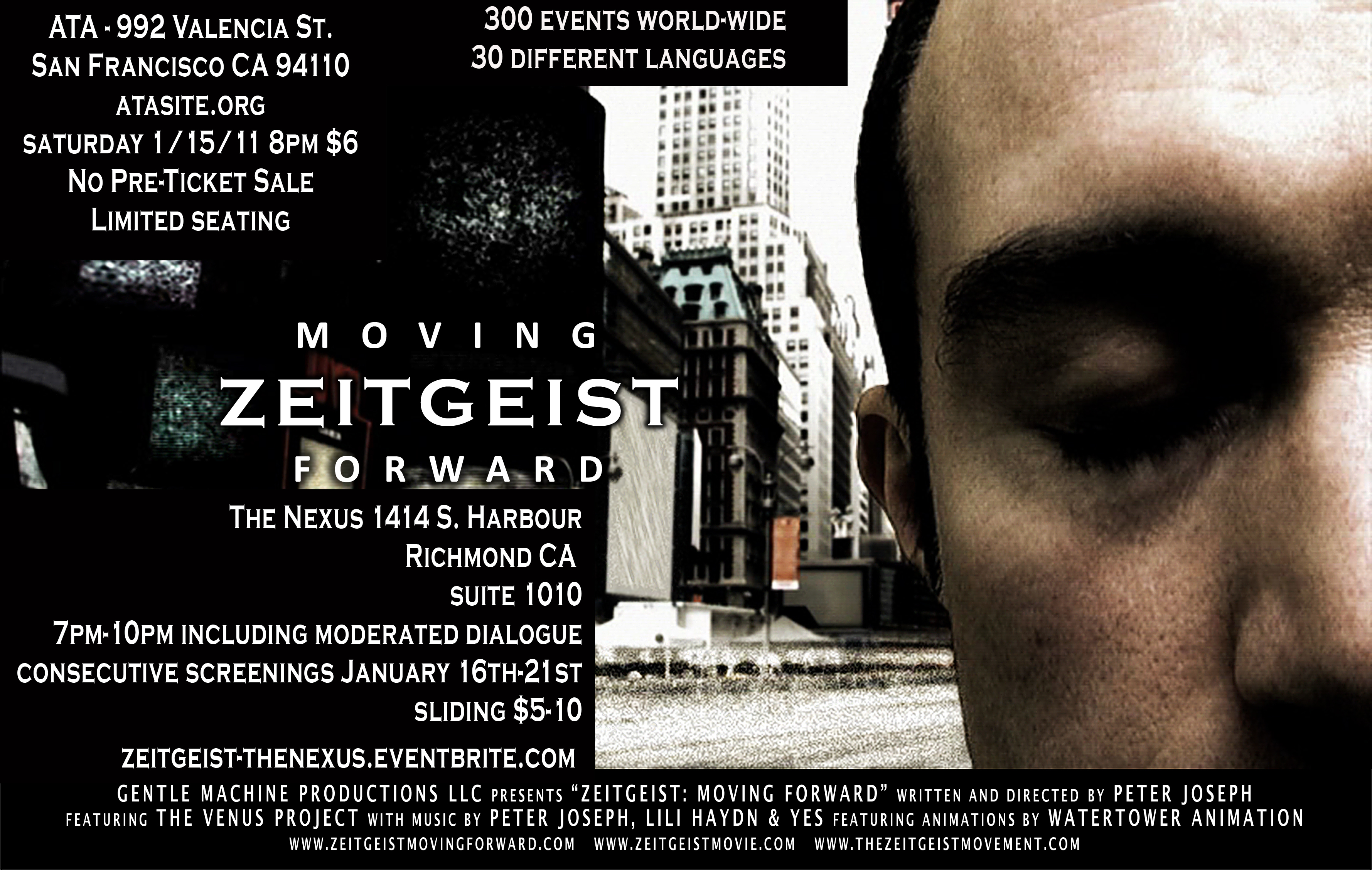 THEATRICAL RELEASE - Zeitgeist: Moving Forward is planned to be released in 60+ countries and in 30+ languages starting January 15th 2011. This large scale release is not associated with any major distributor.