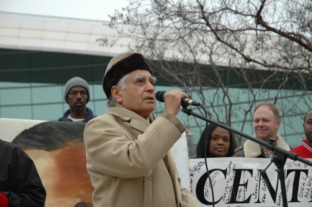 As I stand here this morning I think about the times we live in and I think about what Dr. King would say. We have young people at this event this morning who have never known peace.Since they have been born, the United States has been at war. They have never known peace. We are told that we must first have war before we can have peace. We are told that to have perpetual peace, we must first have perpetual war and I wonder what Dr. King would say on this special Martin Luther King holiday. You know, Dr. King spoke out against the Vietnam war. He took, what was at that time, an unpopular position to speak out against that war - in the name of peace and brotherhood and in the name of activism and doing what is right. Back then, we were told we can’t stop communism unless we first have this war. If there is another one we will have to take action in that one as well. Now we are told we must first have war in Afghanistan before we can have peace and we must first have war in Iraq before we can have peace and I wonder what we are going to be told next - if there is another place we must have war before we have peace. In the name of the young folks that are here, I call on our leaders to give us peace. In the name of the message of Dr. King, give us peace, because there is not just violence on our streets here at home, but there are violence in other countries and our soldiers are right in the middle of that. I say lets bring them home and give us peace.