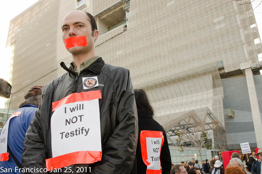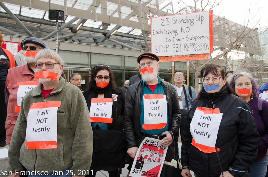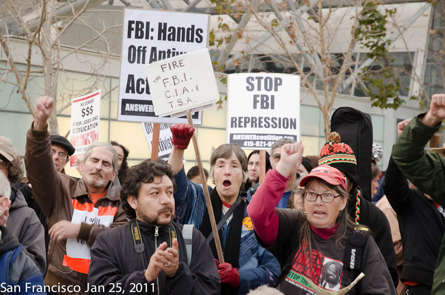 Rally at the SF Federal Building opposing FBI and Grand Jury repression against anti-war and solidarity activists in the Midwest.