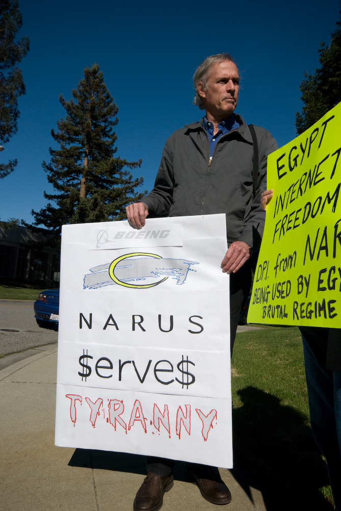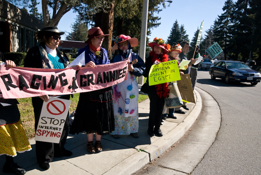According to Wikipedia, Narus provides technology to governments to facilitate the mass surveillance of their citizens. Yesterday the Raging Grannies and San Jose Peace and Justice Center co-sponsored a demonstration in front of Narus' headquarters in Sunnyvale. The Raging Grannies said that although not all applications of DPI are necessarily nefarious, it is a technology that should be subject to the strictest trade compliance export regulations.