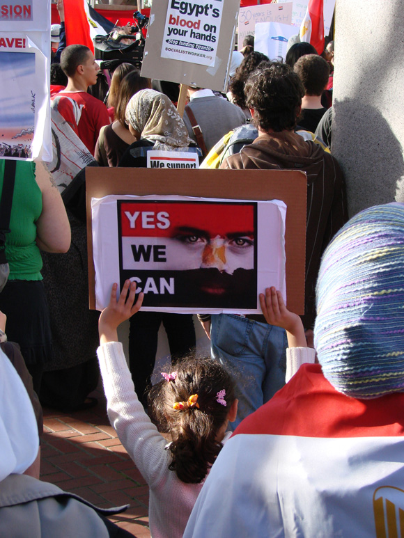 Props to the International ANSWER Coalition for building links with the Arab, Palestinian, Muslim, Egyptian, Middle Eastern and North African communities over the last 10 years.