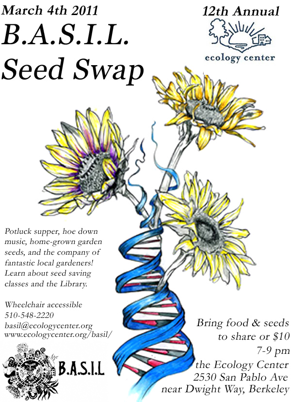 Join us for our annual Bay Area Seed Swap at the Berkeley Ecology Center! This is a fun night for gathering with community, sharing potluck supper, hoe down music, home-grown garden seeds, and lots of fantastic people! Get the chance to meet with other local agriculture stewards and urban gardeners and participate in the art of seed swapping.