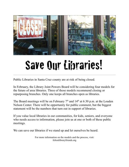 4. More info: http://www.feltonlibraryfriends.org/