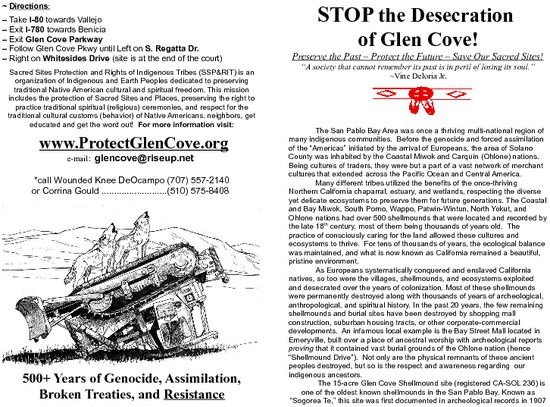 The desecration of the Glen Cove sacred site is scheduled to begin in the next few days.