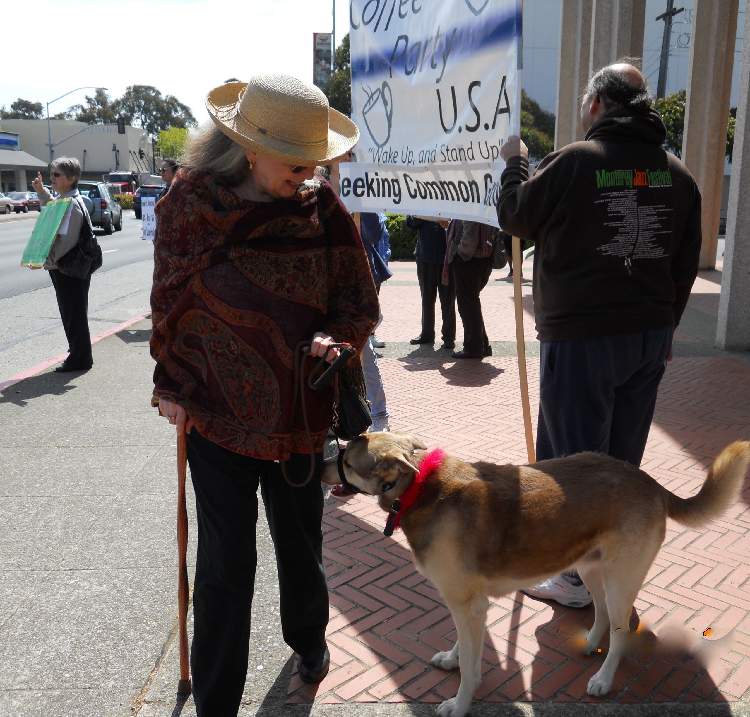 Demonstrators came from up and down the San Francisco Peninsula and included members of San Mateo Peace Action, the Coffee Party, Common Cause and the Raging Grannies. The protest was organized by Take Back Democracy of San Mateo.