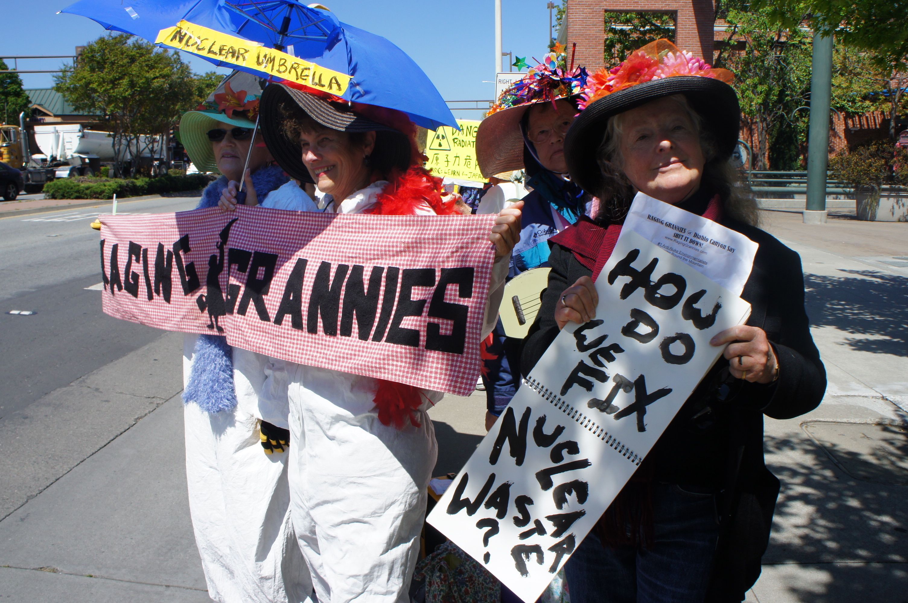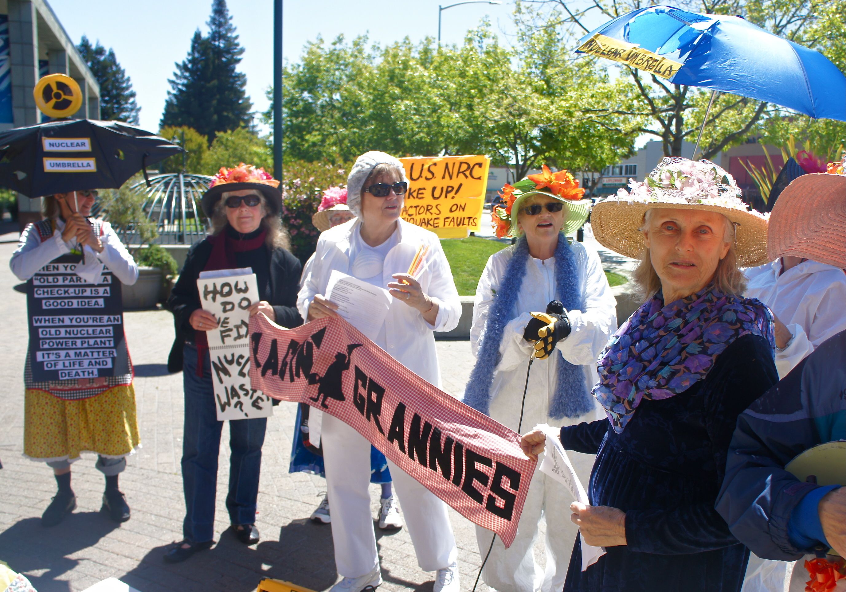 The Grannies spoke and sang for camera and video to remind the public to help get the message to the US Nuclear Regulatory Commission: PG&E owns the nuclear facility at Diablo Canyon and its motive is PROFIT, not safety. Don’t forget that PG&E is the same company that brought us the San Bruno disaster! Last month the Grannies talked to some USGS employees; they are unhappy that PG&E is spewing BS statistics the way Fukushima is spewing radiation.