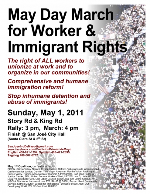 SIREN, Silicon Valley Alliance for Immigration Reform, Voluntarios de la Comunidad, Californians for Justice, Comité 1o de Mayo, American Muslim Voice, Anakbayan Silicon Valley, Pilipino Association of Workers & Immigrants, San José Peace & Justice Center, SEIU United Service Workers West, UFCW Local 5, Unite HERE! Local 19, South Bay AFL-CIO Labor Council, SEIU Local 521 Latino Caucus, MAÍZ, MEChA Alta Norte, Laborers Local 270, SAHE @ SJSU, Sacred Heart Community Service, Somos Mayfair, Human Agenda, Justice for Immigrants - Diocese of San Jose, Our Developing World, WILPF-San José, RUMEC.