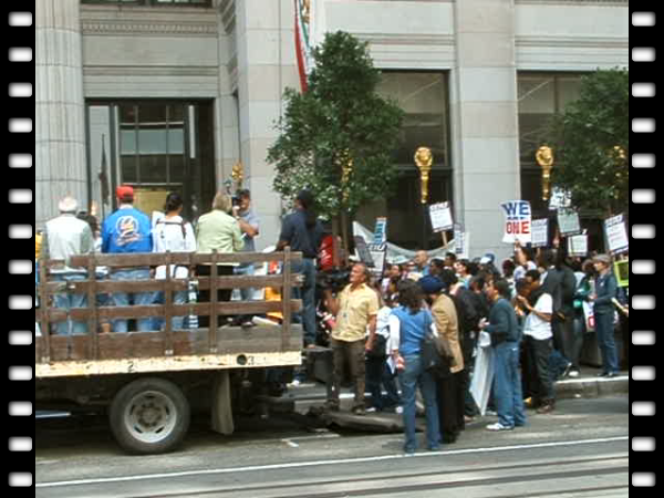 Multi-media presentation of photos and video, with music, of the direct action at the Annual Shareholders Meeting of Wells Fargo. The protest was organized by The New Bottom Line campaign. The New Bottom Line is a nationwide network that includes the National Peoples' Action, PICO National Network, Alliance for a Just Society, Alliance of Californians for Community Empowerment, and the Industrial Areas Foundation of the Southeast, as well as dozens of state and local organizations. [ http://newbottomline.com/ ] The protest was also supported by a number of labor unions.