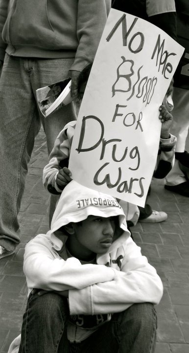 ¡DESMILITARIZACIÓN INMEDIATA! ¡FUERA CALDERÓN ASESINO! ¡FUERA AGENTES ESTADOUNIDENSES! ¡LEGALIZACIÓN DE LAS DROGAS!