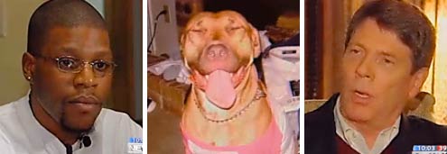 From left: Steven Woods, his pit bull (in pink) and former attorney Randy Turner.