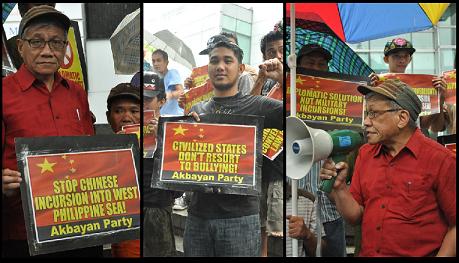 Akbayan Representative Walden Bello who led the protest denounced the provocative acts of the Chinese government, which he described as blatant bullying.