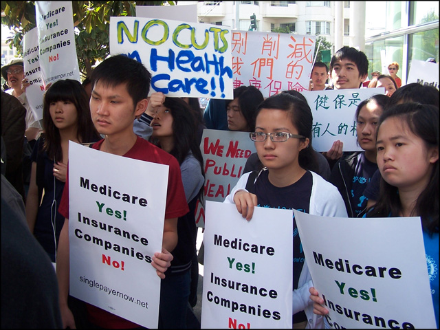 The Chinese Progressive Association's YOUTH MOJO was among the Bay Area groups demonstrating against health insurance corporations meeting in San Francisco on June 16, 2011.