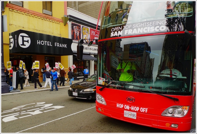 Workers at Hotel Frank have been under attack since Wells Fargo foreclosed on the hotel in May, 2010. Wells Fargo brought in a new management company, Provenance, which refuses to recognize the UNITE HERE Local 2 contract, has not paid anything for medical coverage or pensions, has dangerously increased the workload for room cleaners and other workers, and has fired Union organizers.