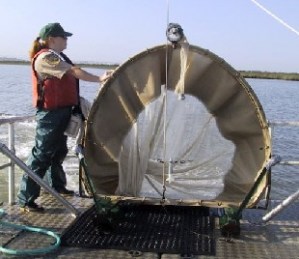 Photo of tow net survey courtesy of the Department of Fish and Game.