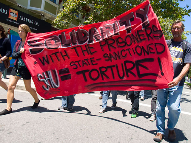 On July 23rd, about twenty people rallied and marched in downtown Santa Cruz in solidarity with prisoners at Pelican Bay who have ended their hunger strike and declared it a success! Their courageous act of refusing to eat for four weeks has successfully put the issues of torturous isolation units and California's abominable debriefing program in the international and national media, boosted a growing movement for the rights of prisoners, and is unifying prisoners of different racial groups for a struggle against their real and shared enemies: the unfair policies and practices of the California Department of Corrections and Rehabilitation (CDCR).