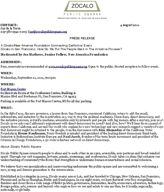 Zócalo in San Francisco: How Do We Put The People Back in The Initiative Process?