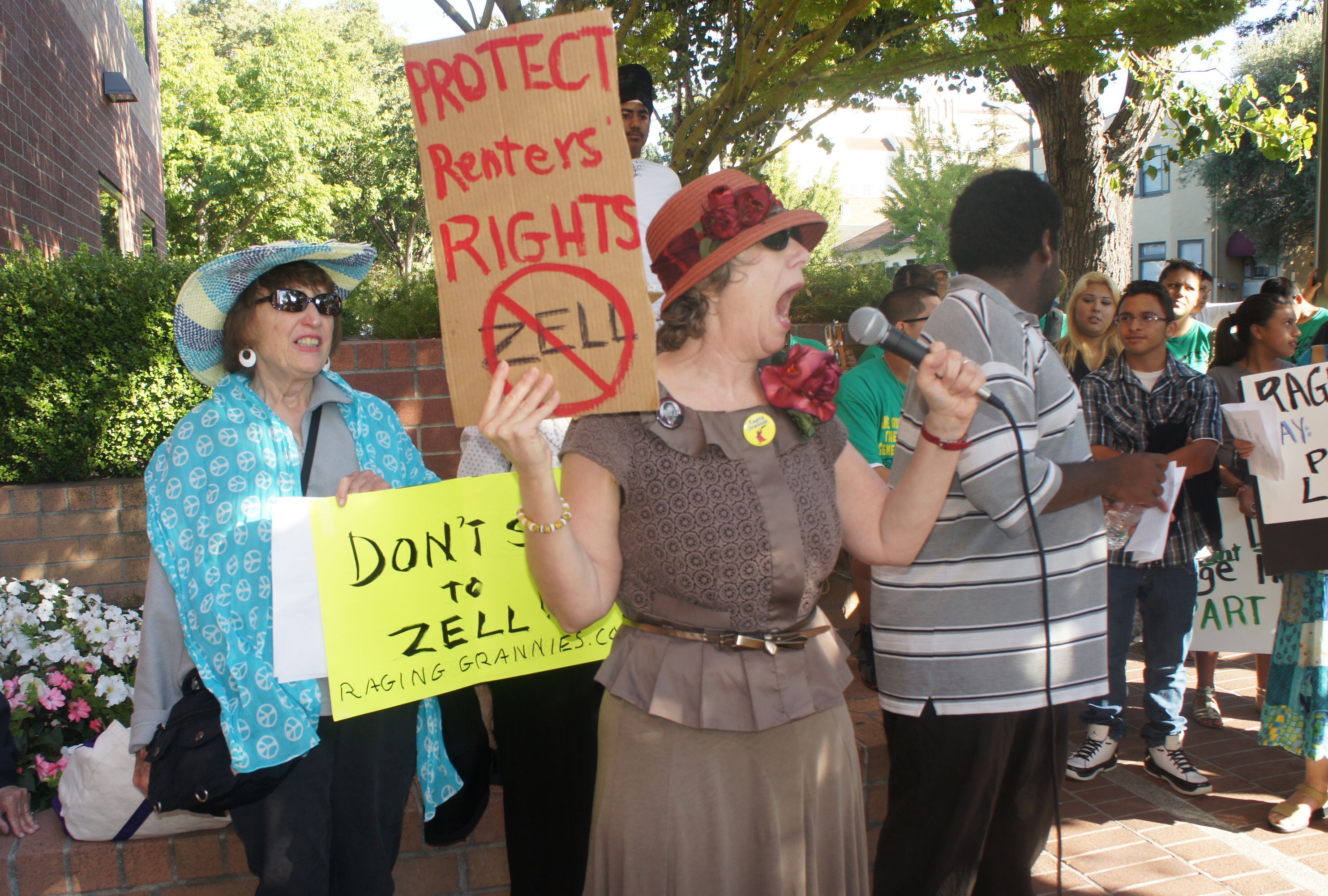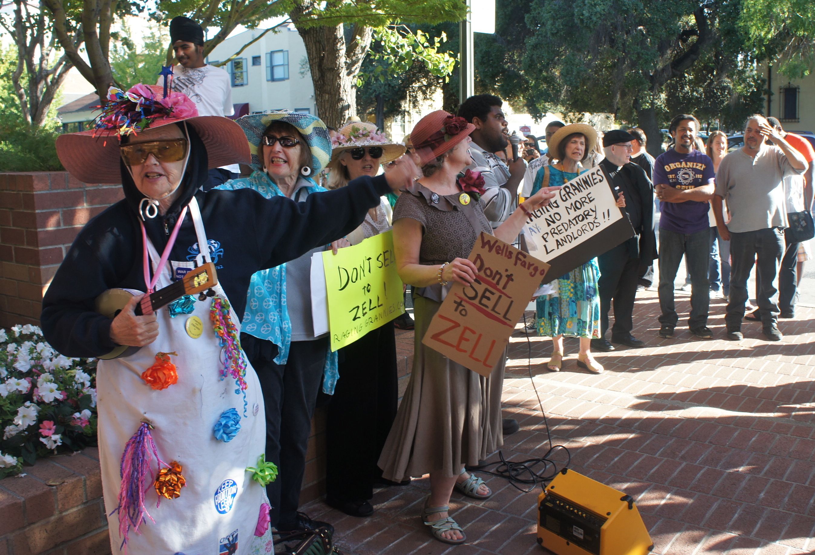“Don’t Sell To Zell!” shouted East Palo Alto tenants and their supporters, as they rallied on Monday in front of a Wells Fargo branch in downtown Palo Alto. The demonstrators were protesting Wells Fargo’s pending arrangement with investment group Equity Residential, of which Sam Zell is the founder and chairman.