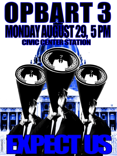 We are Anonymous, over the past two weeks we have proven that we stand by what we believe. You have threatened to shut down cell phone service if needed again, although your threats went empty, the dictator like tactics did not go unnoticed by the world. BART police are becoming increasingly aggressive at the protest, and peaceful protesters are being arrested for “being too loud”. We will continue to show the world why #OpBART is necessary. We have stated and will keep our promise of a protest EVERY week until our demands are met. Since these demands have not reached the BART board of directors yet, we will remind you of what we want in order to stop our protest: