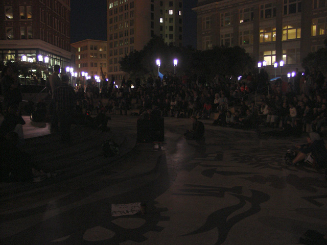 Plans are for a movie on the people's resistance movement in Oaxaca at 9pm on Wednesday and hiphop performances by Ras Ceylon, Boots Riley, and others on Thursday evening. Dinner will be served at 5pm daily. There are a number of working groups to get involved with to make the occupation work. Just contact someone doing something you might be interested in helping with to get involved. Donations are always welcome as well.