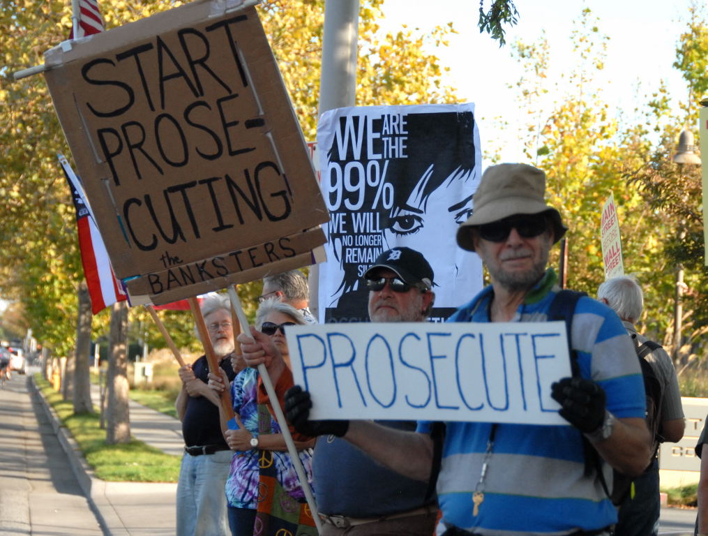 The main focus of the protest was a demand for accountability of wall street and the major banks, such as, Bank of America who received 45 billion in tax payer bailout. The event was sponsered by the Peninsula Peace and Justice Center.
